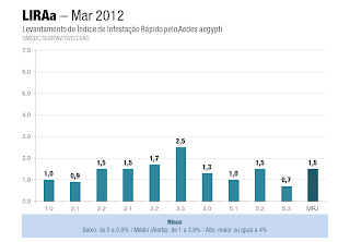 A taxa é a menor já registrada neste período do ano e a segunda menor em todos os levantamentos feitos nos últimos anos, comparando todos os períodos do ano. A última taxa registrada na cidade foi de 2,3%, em janeiro. O resultado deste mês indica que a cada 1.000 imóveis vistoriados pelos agentes de saúde, em 15 foram encontrados focos do mosquito transmissor da dengue.