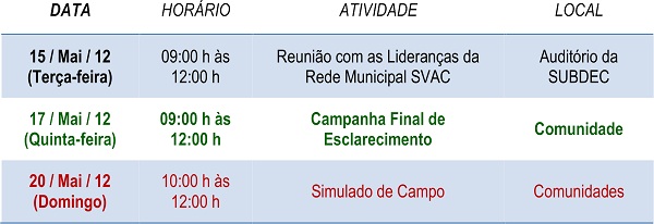 O Exercício Simulado de Desocupação nas Áreas de Alto Risco Geológico será no dia 20 de maio de 2012 (Domingo), às 10:00h.